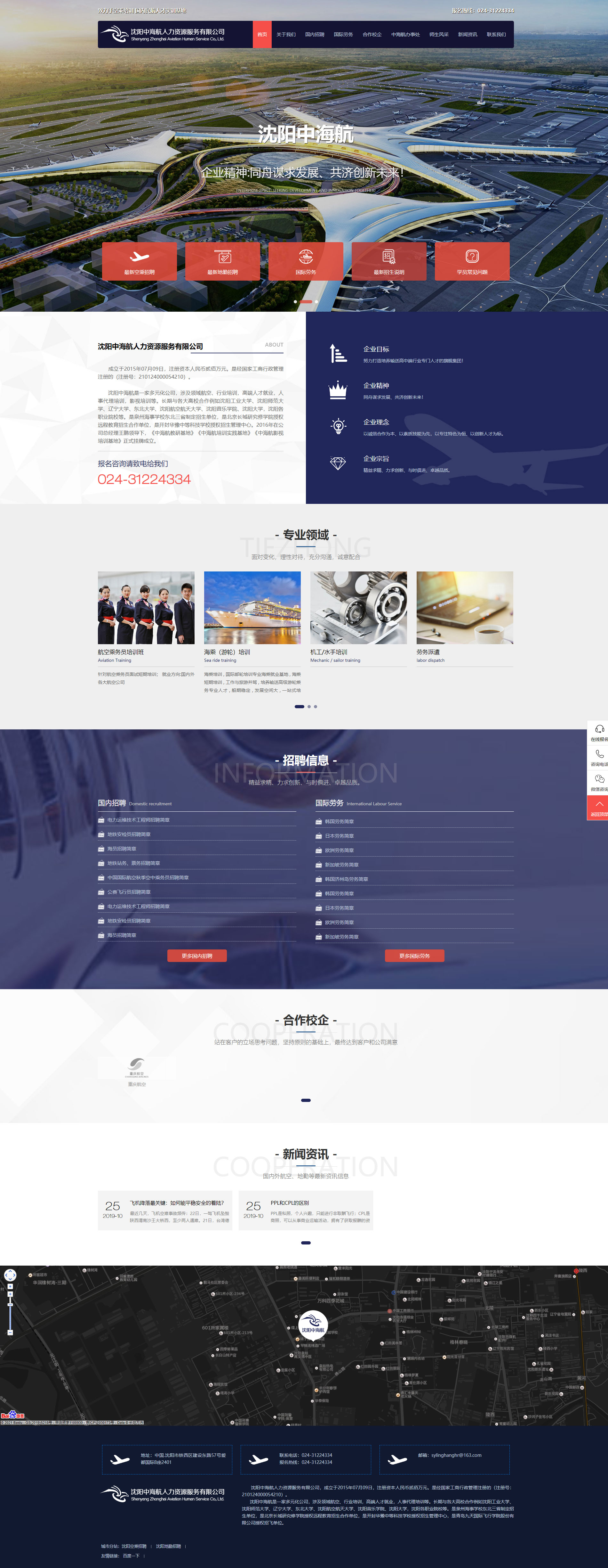 沈陽中海航是一家多元化公司,涉及領(lǐng)域航空、行業(yè)培訓(xùn),高端人才就業(yè),人事代理培訓(xùn)等。長期與各大高校合作例如沈陽工業(yè)大學(xué)、沈陽師范大學(xué)、遼寧大學(xué)、東北大學(xué)、沈陽航空航天大學(xué)、沈陽音樂學(xué)院、沈陽大學(xué),沈陽各職業(yè)院校等。是泉州海事學(xué)校東北三省制定招生單位,是北京長城研究修學(xué)院授權(quán)遠(yuǎn)程教育招生合作單位,是開封華豫中等科技學(xué)校授權(quán)招生管理中心,是青島九天國際飛行學(xué)院股份有限公司授權(quán)招飛單位。