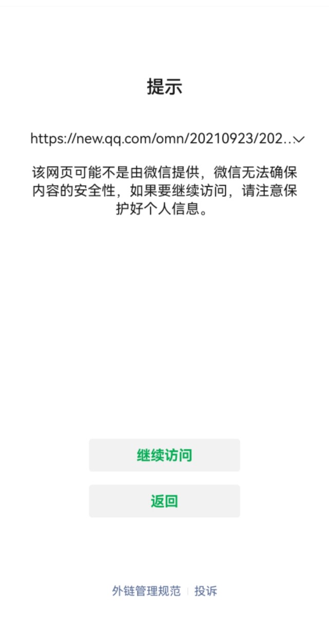 近日,微信外鏈似乎關掉了分享功能,也就是除微信鏈接外,其他網址不能直接打開,也不能發送給朋友或者分享到朋友圈。即便騰訊官網,也需要點擊“繼續前往”后,才可跳轉至相關頁面。針對互聯網平臺間解除鏈接壁壘的整改情況,工信部在9月13日的國新辦新聞發布會上表示,互聯互通是互聯網行業的必然選擇。包括無正當理由限制其他網址鏈接的正常訪問、實施歧視性屏蔽措施等場景。平臺解除屏蔽的限期為9月17日。
