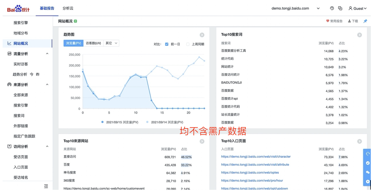 統計團隊會對黑灰產數據進行智能屏蔽識別。一旦發現黑灰產信息,會毫不留情的進行屏蔽。最終用戶在查詢頁面數據時,會發現黑產信息顯示(已屏蔽)。網站概況報告中top數據也會智能剔除這些信息!