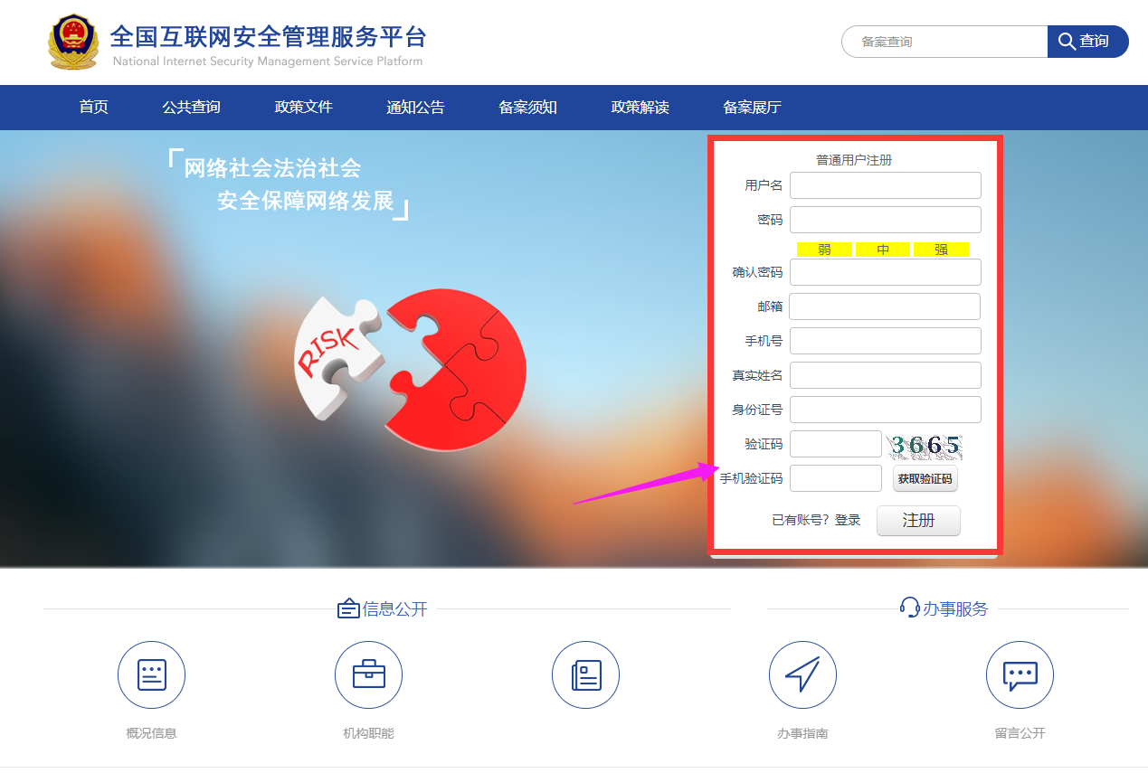 一、在全國互聯網安全管理服務平臺上 http://www.beian.gov.cn/portal/index.do 進行用戶注冊。