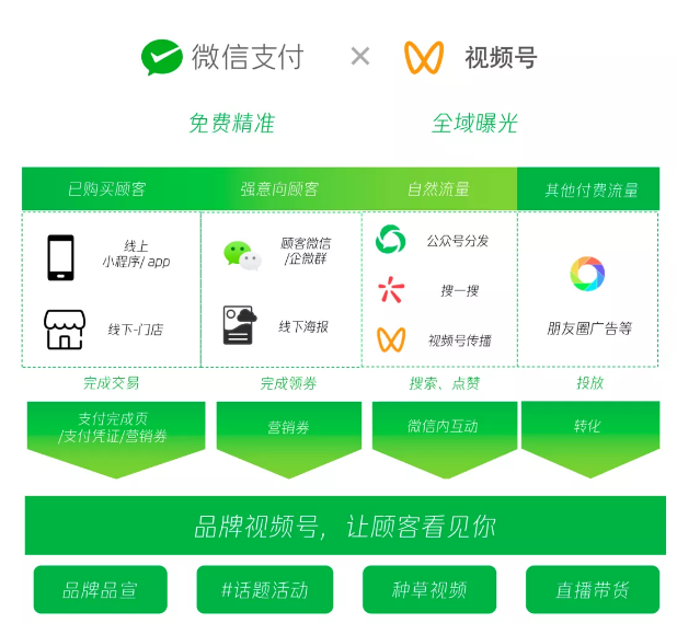 微信支付方面宣布聯合視頻號打造“品牌視頻號”,實現運營場景的打通。微信支付成功頁面可直接跳轉至品牌視頻號主頁等功能,幫助品牌商更好的觸達用戶,提高用戶粘性,提升商家品牌曝光度與流量聚焦。